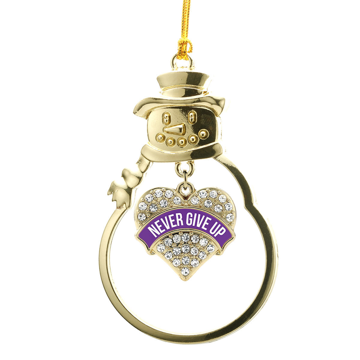 Gold Purple Banner Never Give Up Pave Heart Charm Snowman Ornament