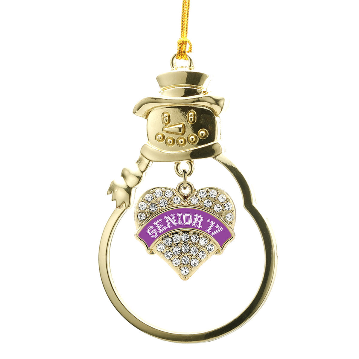 Gold Purple Senior 2017 Pave Heart Charm Snowman Ornament