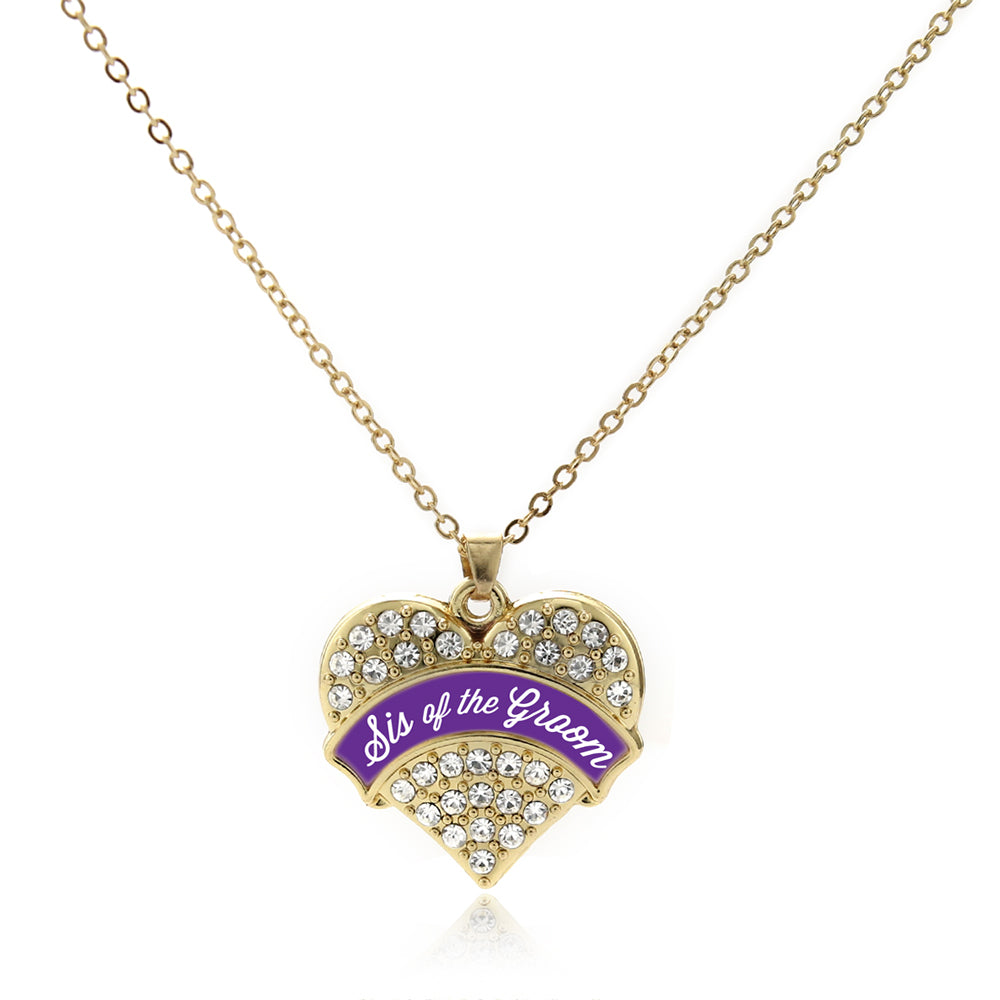 Gold Purple Sis of the Groom Pave Heart Charm Classic Necklace