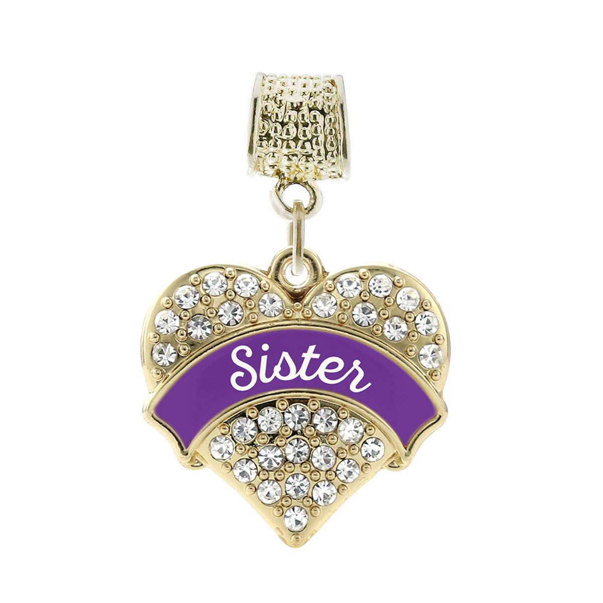 Our sparkling memory charm, equipped with a stylish charm attachment ring and the Purple Sister pave heart charm, is crafted from white metal with a gold plated finish and accented with cubic zirconia stones.