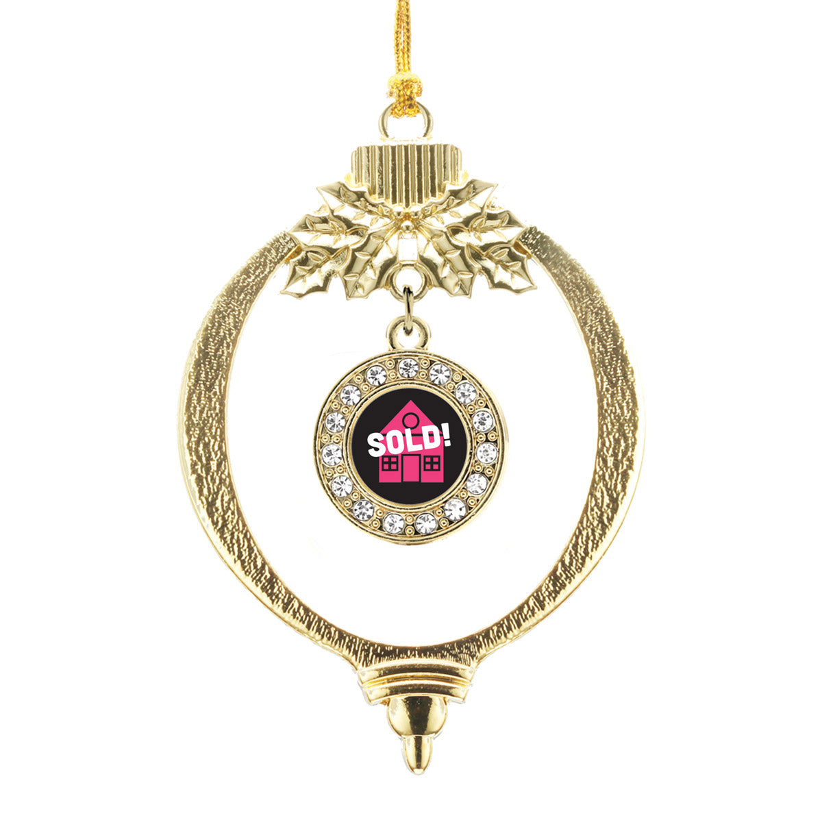 Our sparkling holiday ornament, equipped with a stylish silver rope and the Real Estate Agent circle charm, is crafted from white metal with a gold plated finish and accented with cubic zirconia stones.