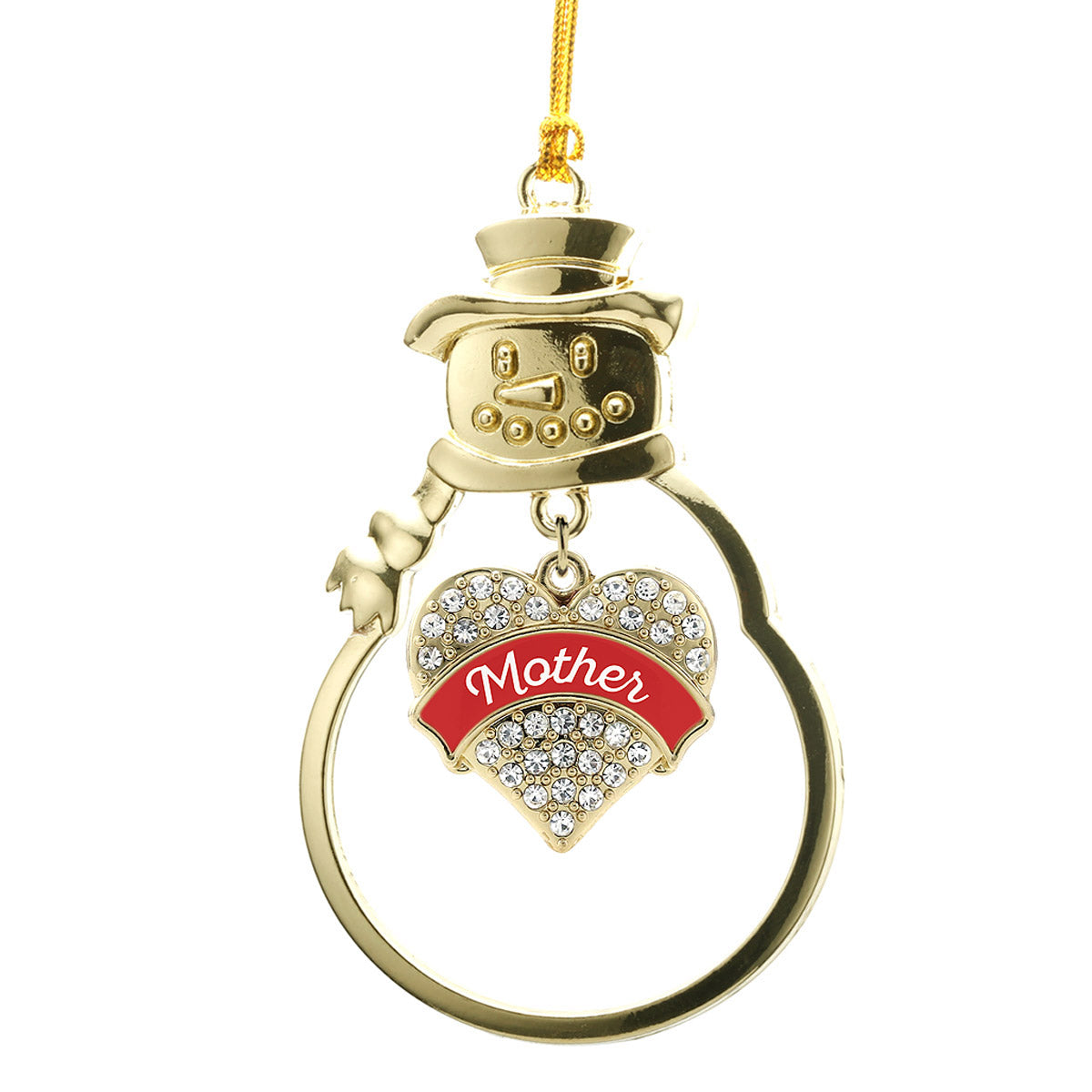 Gold Red Mother Pave Heart Charm Snowman Ornament