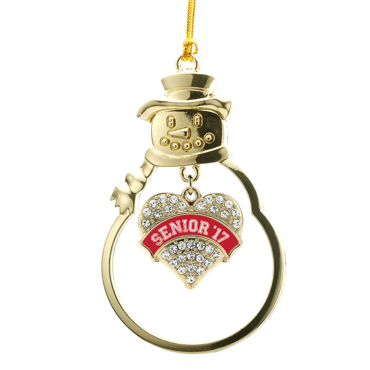 Gold Red Senior 2017 Pave Heart Charm Snowman Ornament