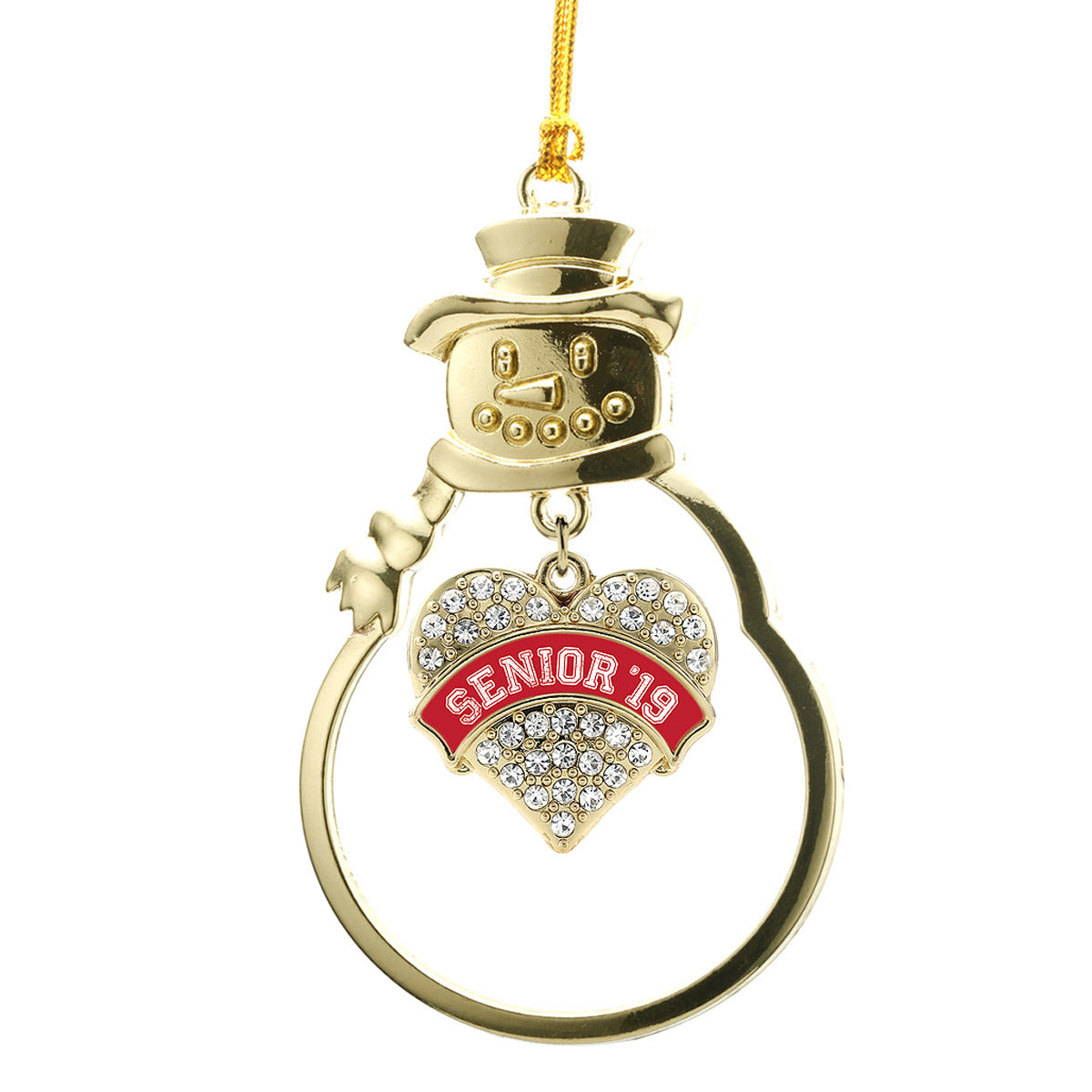 Gold Red Senior 2019 Pave Heart Charm Snowman Ornament