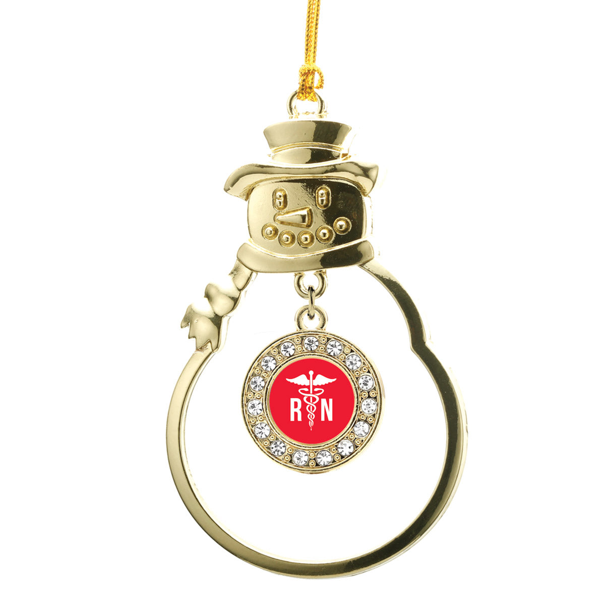 Gold Registered Nurse Circle Charm Snowman Ornament