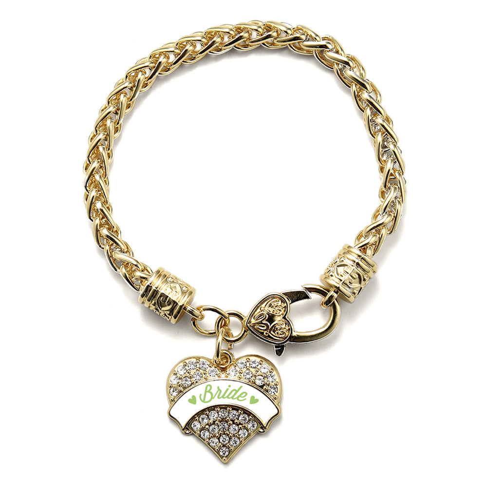 Gold Sage Green Bride Pave Heart Charm Braided Bracelet