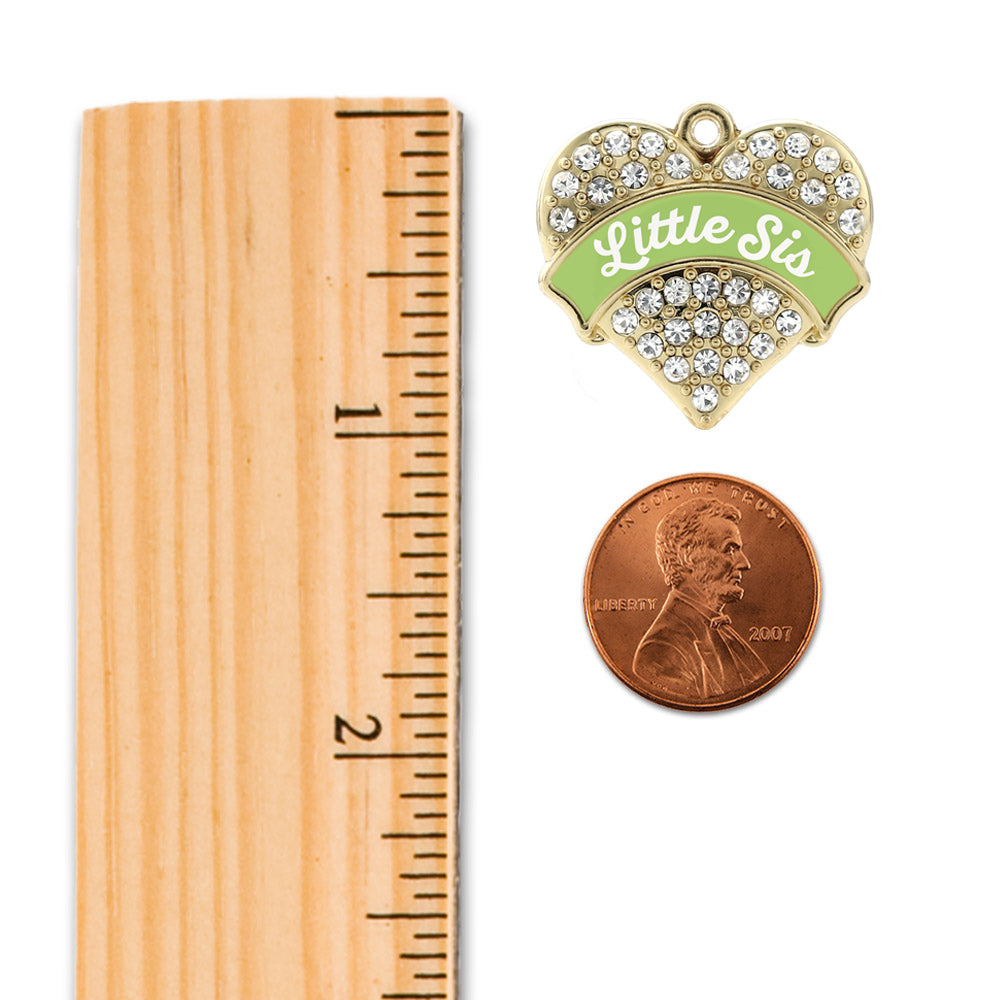 Gold Sage Green Little Sister Pave Heart Charm Holiday Ornament