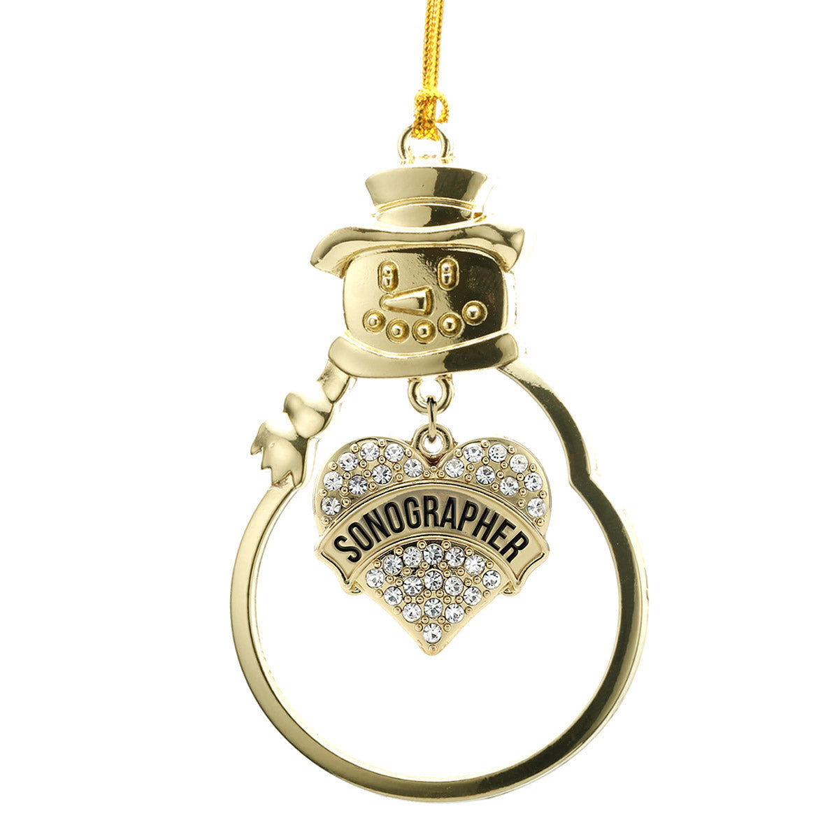 Gold Sonographer Pave Heart Charm Snowman Ornament