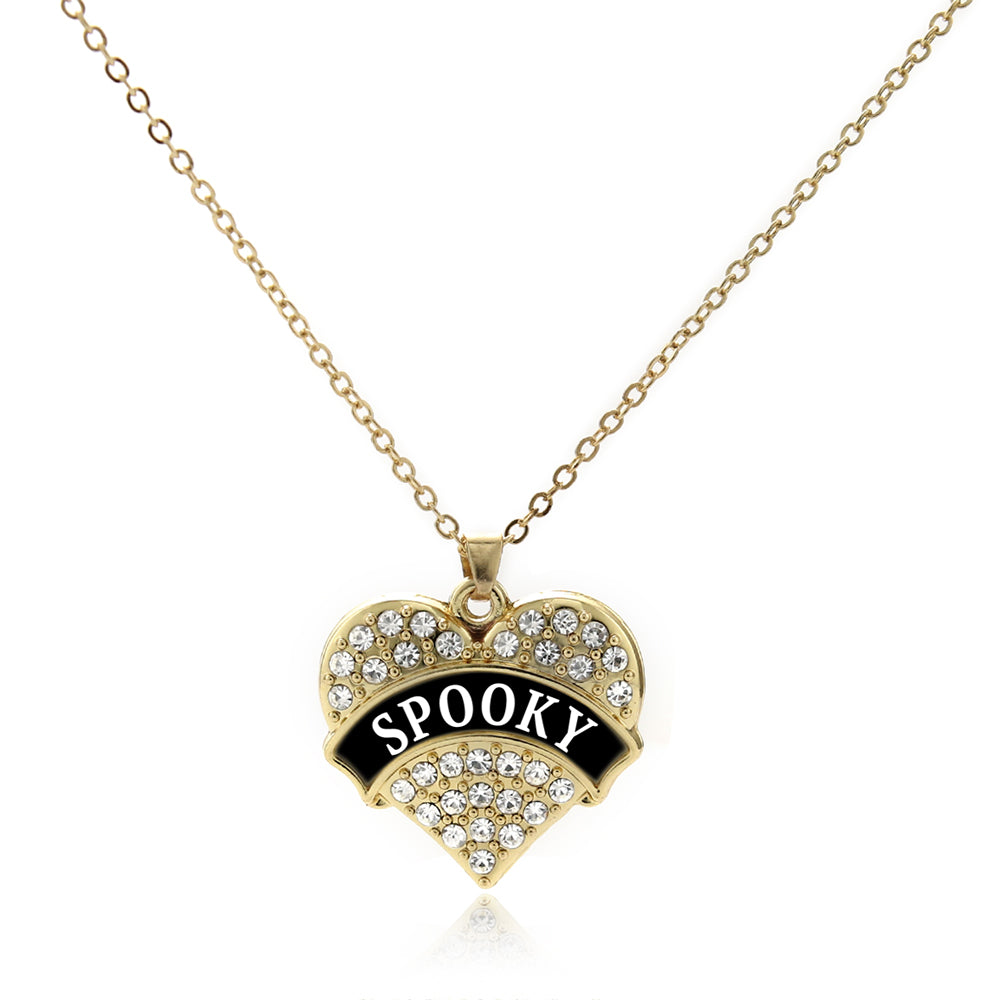Our sparkling classic necklace, equipped with a stylish lobster claw clasp and the Spooky pave heart charm, is crafted from white metal with a gold plated finish and accented with cubic zirconia stones.