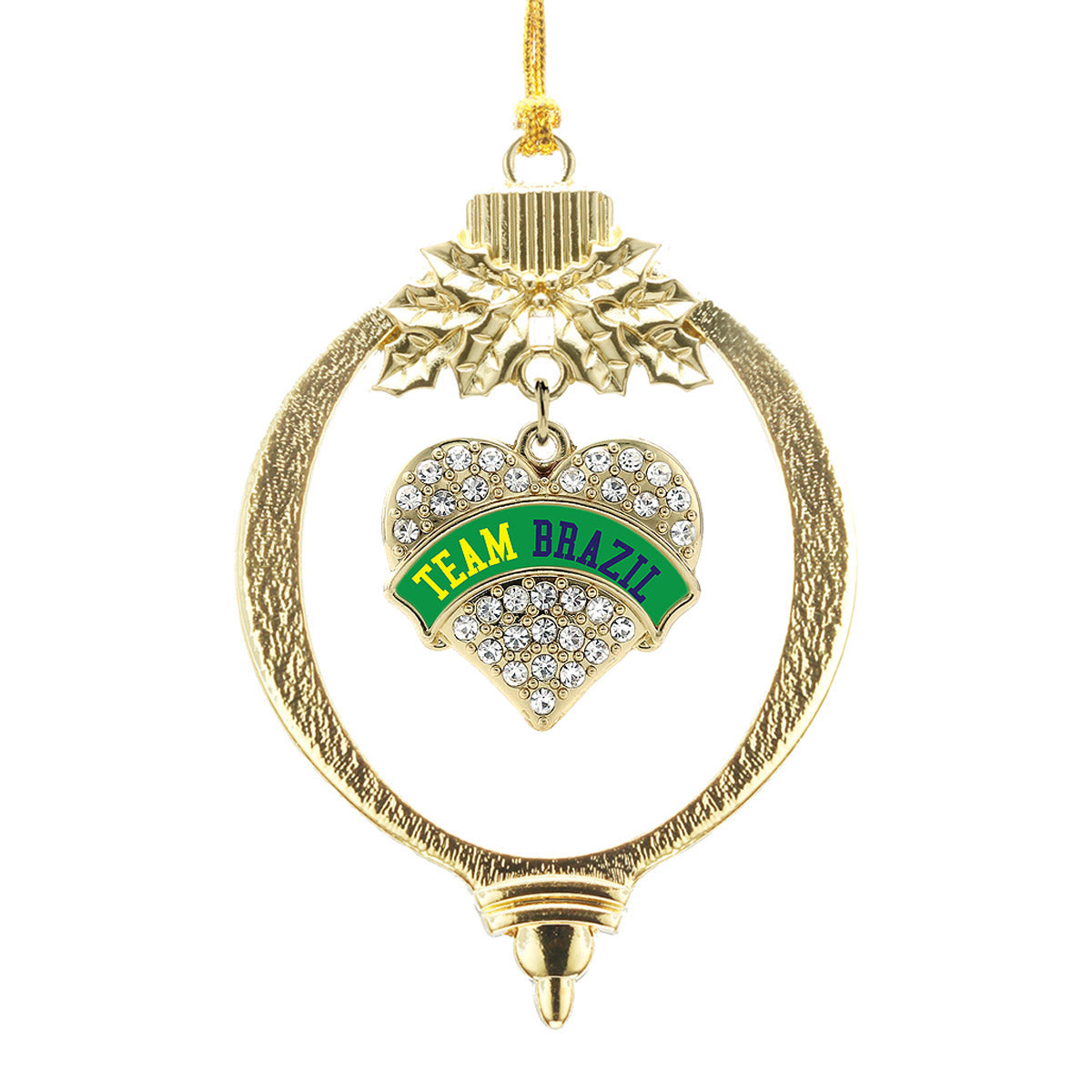 Gold Team Brazil Pave Heart Charm Holiday Ornament