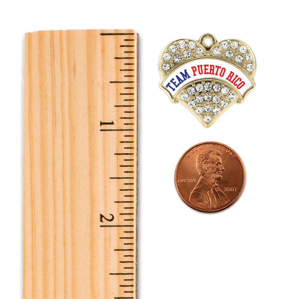 Our sparkling braided bracelet, equipped with a stylish lobster claw clasp and the Team Puerto Rico pave heart charm, is crafted from white metal with a gold plated finish and accented with cubic zirconia stones.