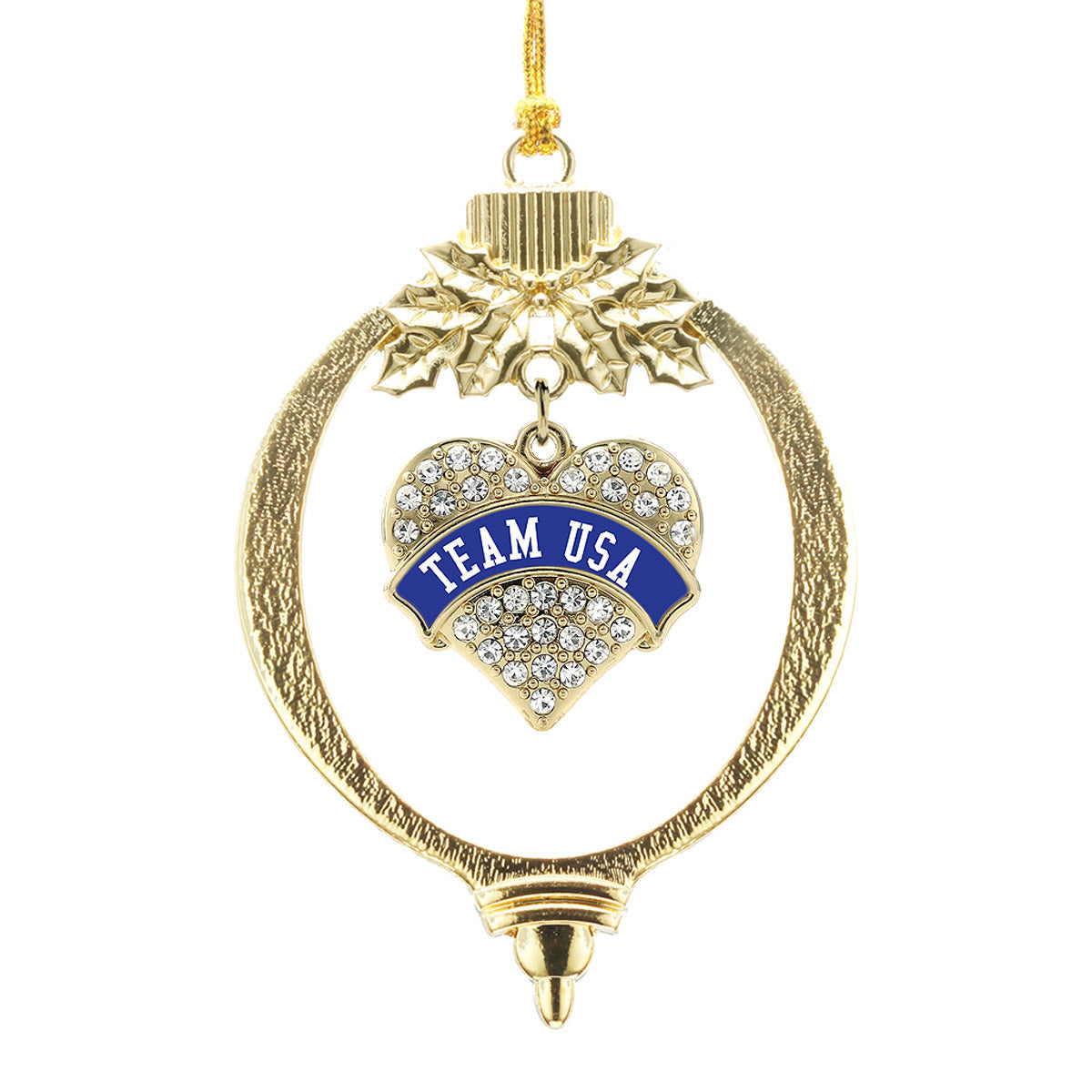Gold Team USA - Blue Banner Pave Heart Charm Holiday Ornament