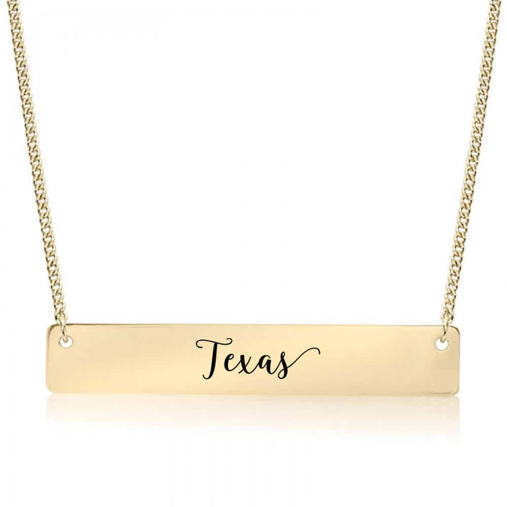 Our sparkling bar necklace, equipped with a stylish lobster claw clasp and the Texas bar charm, is crafted from white metal with a gold plated finish.