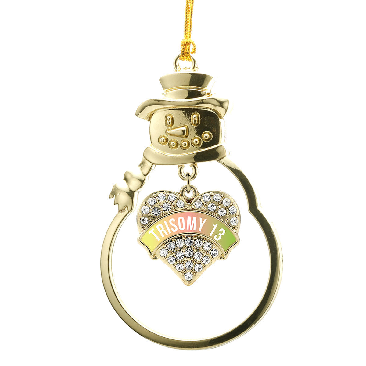 Gold Trisomy 13 Awareness Pave Heart Charm Snowman Ornament