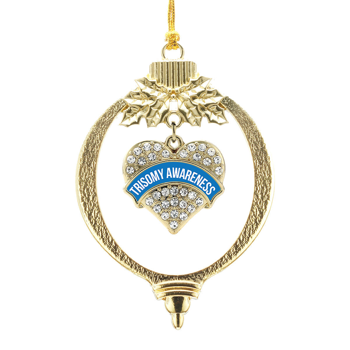 Gold Trisomy Awareness Pave Heart Charm Holiday Ornament