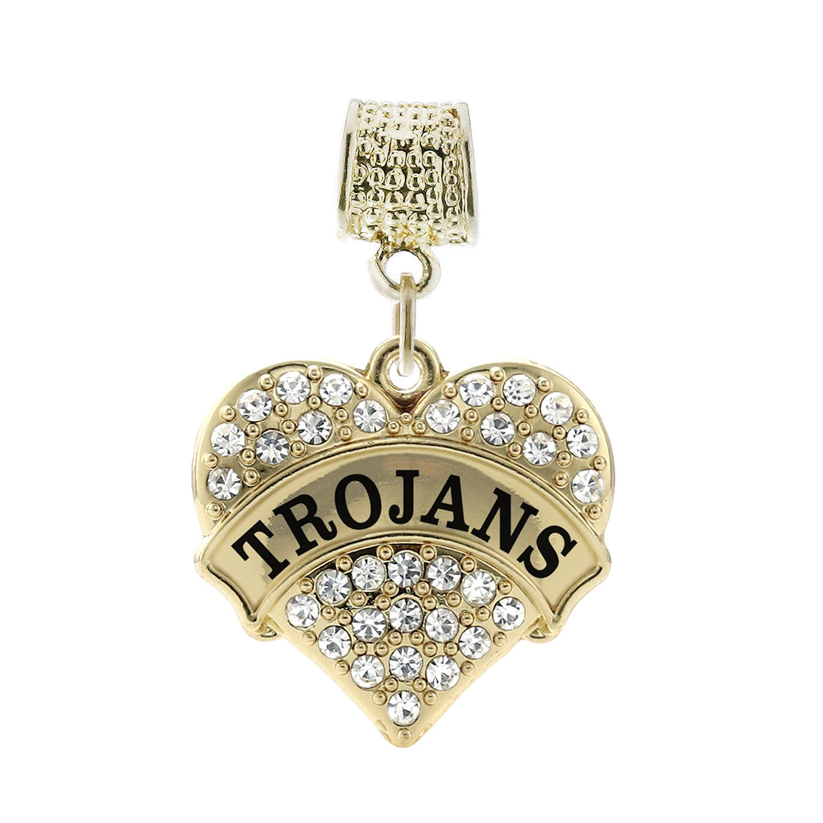 Our sparkling memory charm, equipped with a stylish charm attachment ring and the Trojans pave heart charm, is crafted from white metal with a gold plated finish and accented with cubic zirconia stones.