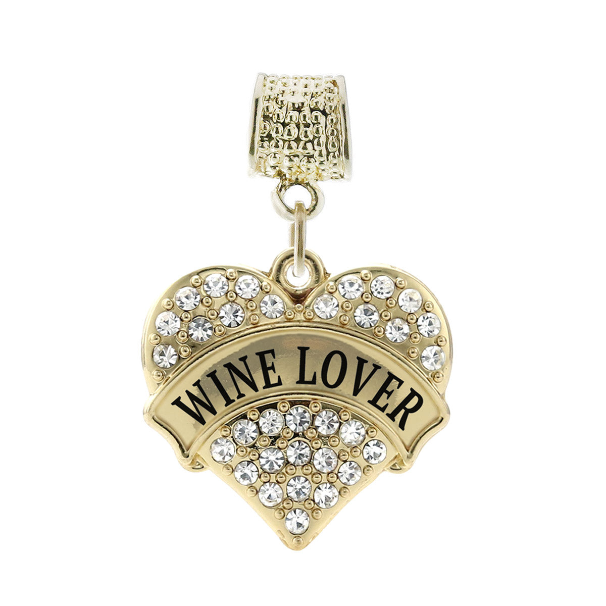 Our sparkling memory charm, equipped with a stylish charm attachment ring and the Wine Lover pave heart charm, is crafted from white metal with a gold plated finish and accented with cubic zirconia stones.
