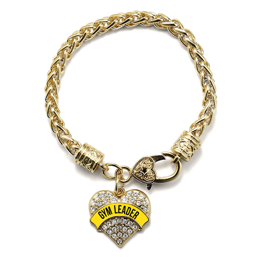 Gold Yellow Gym Leader Pave Heart Charm Braided Bracelet