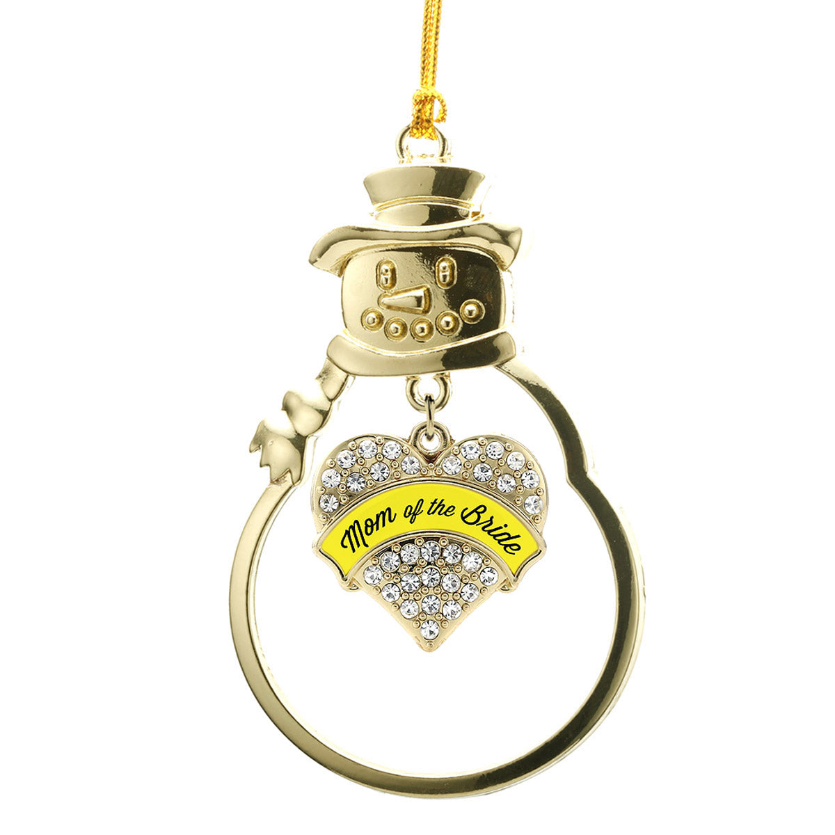 Gold Yellow Mom of the Bride Pave Heart Charm Snowman Ornament