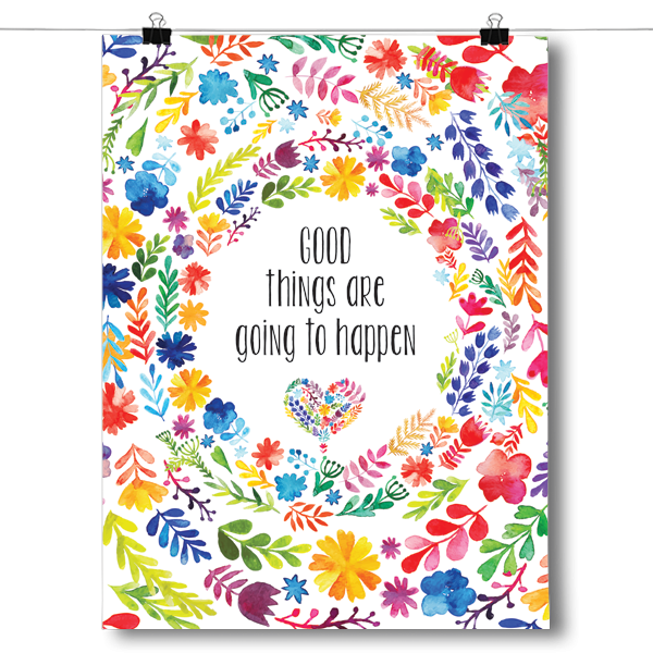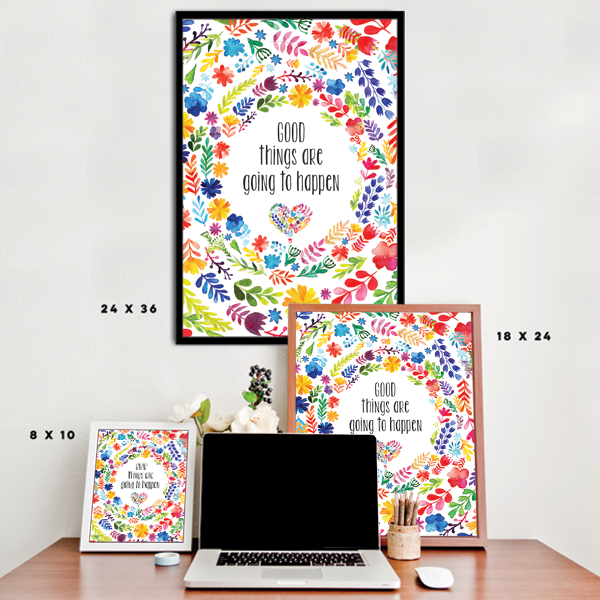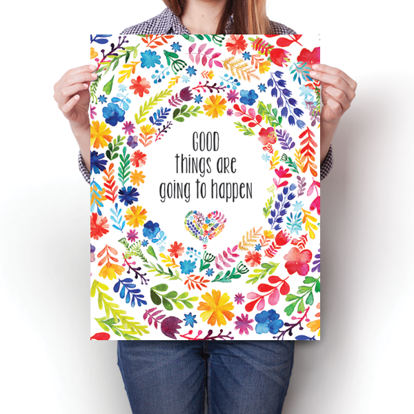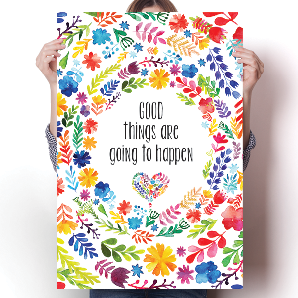 This unique Good Things are Going to Happen poster was creatively designed and printed on thick paper with a high-quality finish in-house using UV Printing process, where the ink is cured by UV rays to produce sharp and vivid images with a high degree of color accuracy.