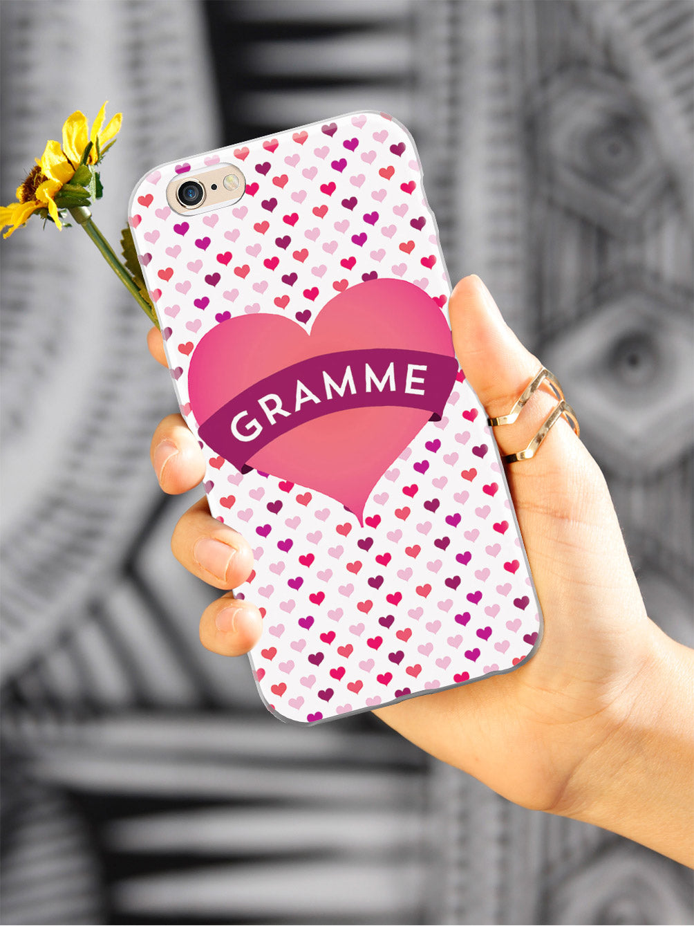 This unique Gramme Heart for Grandma case was creatively designed and printed with a high-quality finish in-house using UV Printing process, where the ink is cured by UV rays to produce sharp and vivid images with a high degree of color accuracy.
