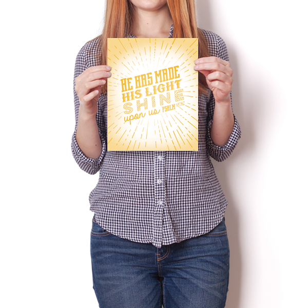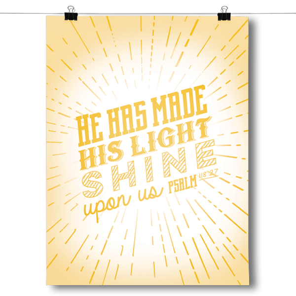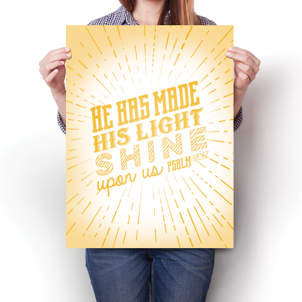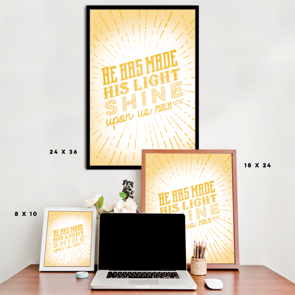 This unique He Has Made his Light Shine - Psalm 118 poster was creatively designed and printed on thick paper with a high-quality finish in-house using UV Printing process, where the ink is cured by UV rays to produce sharp and vivid images with a high degree of color accuracy.