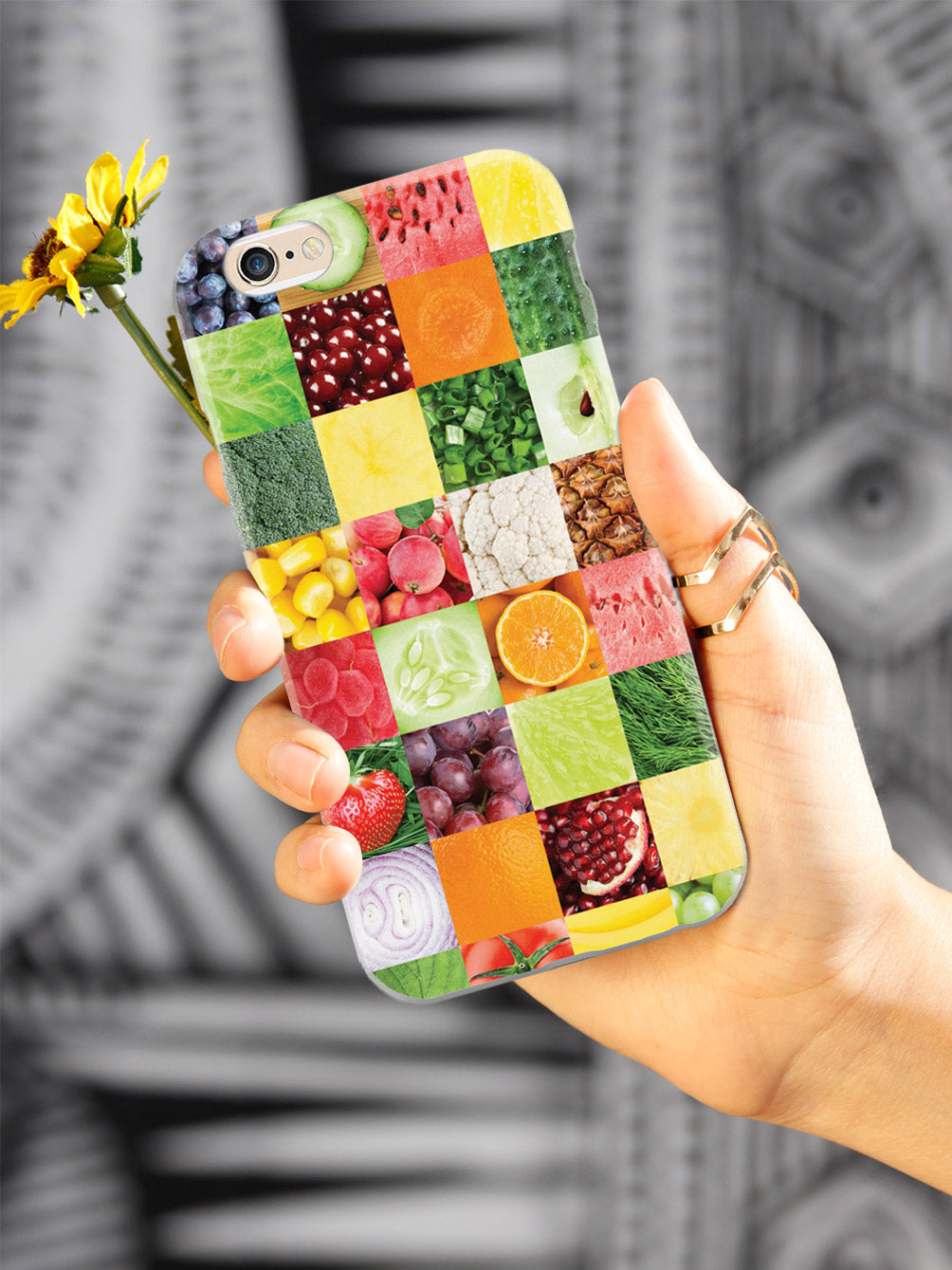 This unique Healthy Foods Quilt Pattern 1 case was creatively designed and printed with a high-quality finish in-house using UV Printing process, where the ink is cured by UV rays to produce sharp and vivid images with a high degree of color accuracy.