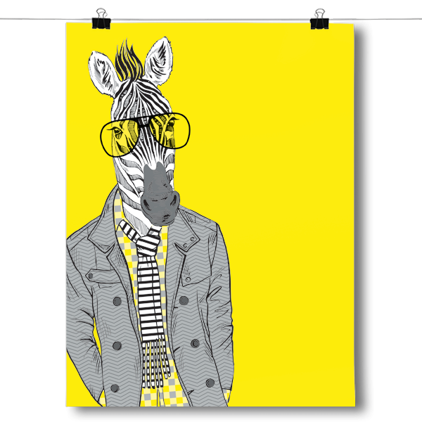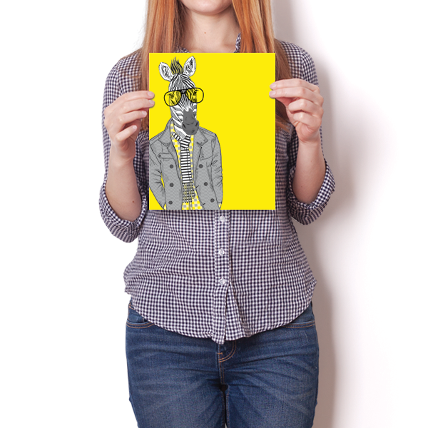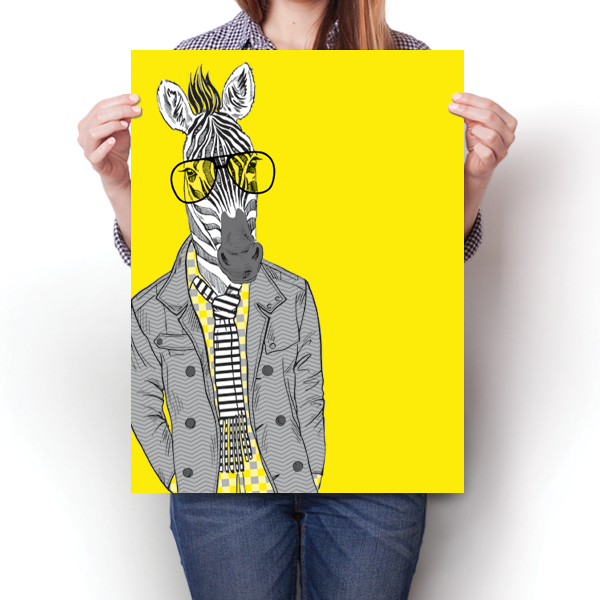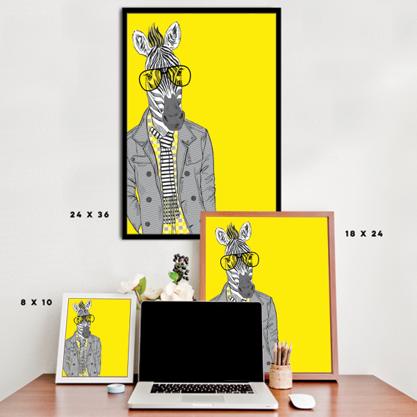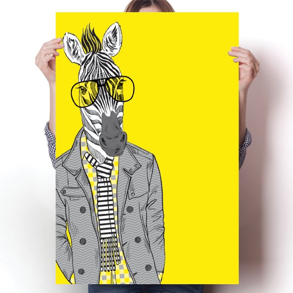 This unique High Fashion Zebra Hip Animal poster was creatively designed and printed on thick paper with a high-quality finish in-house using UV Printing process, where the ink is cured by UV rays to produce sharp and vivid images with a high degree of color accuracy.
