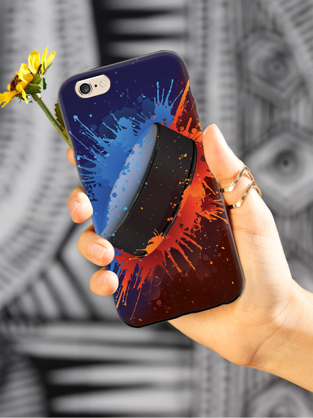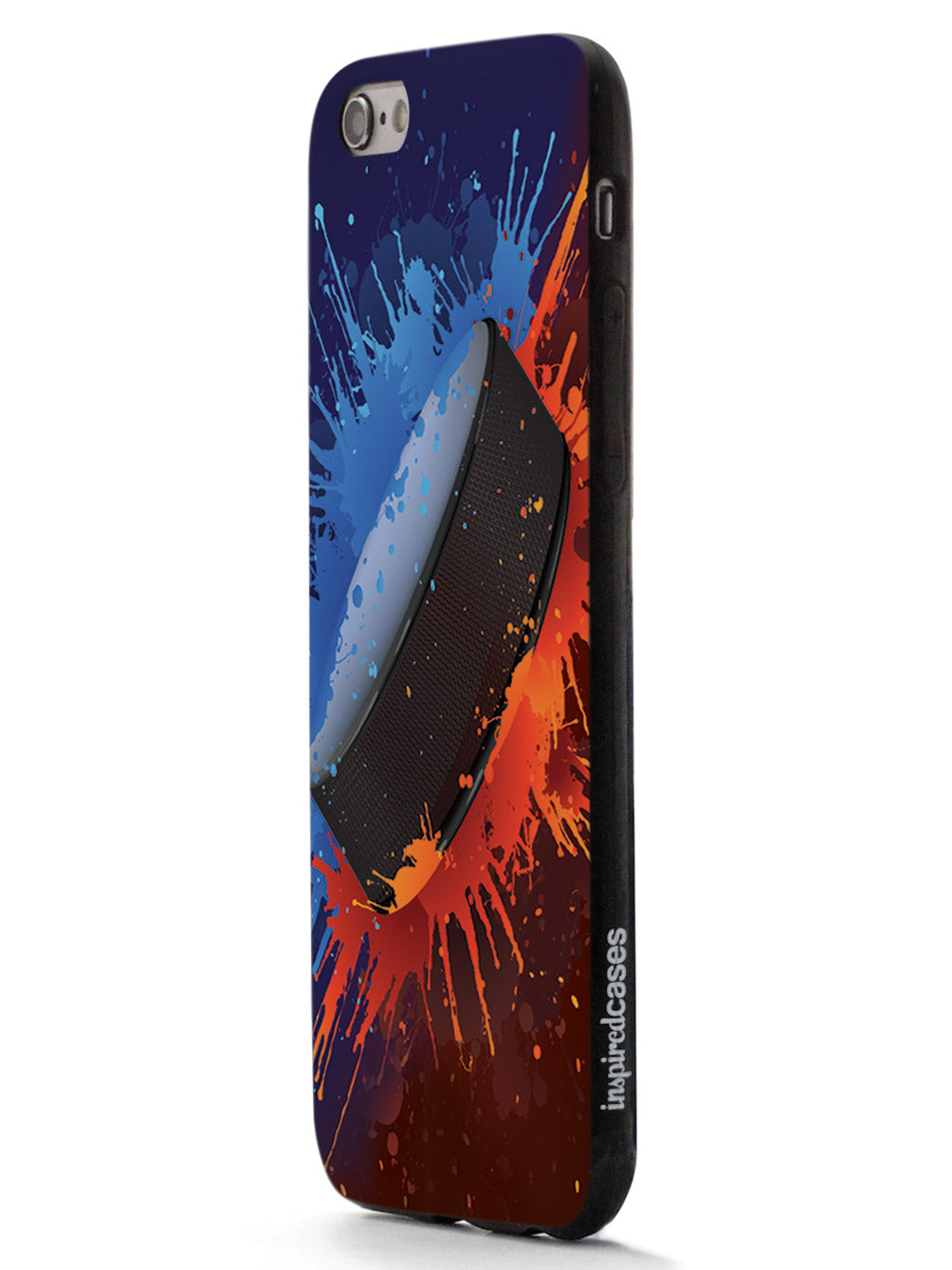 This unique Hockey Puck - Slap Shot! case was creatively designed and printed with a high-quality finish in-house using UV Printing process, where the ink is cured by UV rays to produce sharp and vivid images with a high degree of color accuracy.