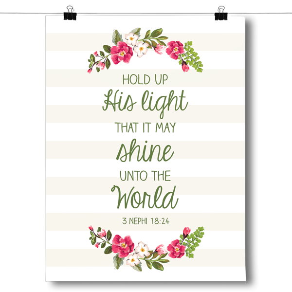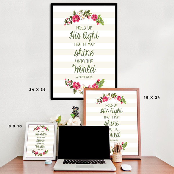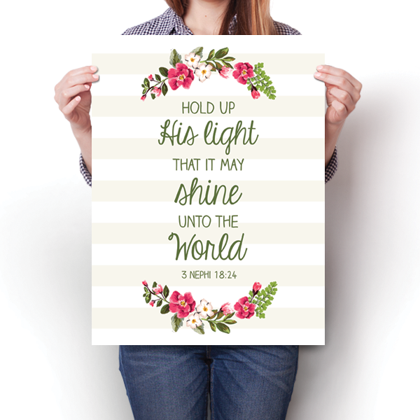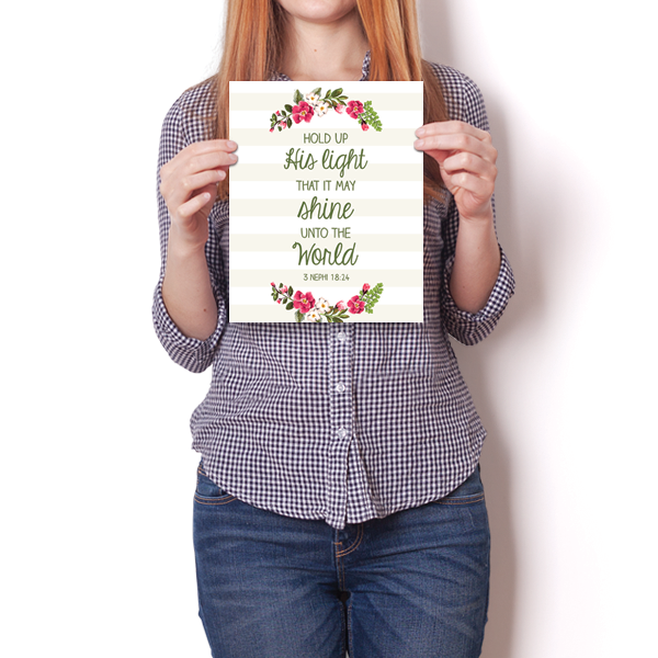 This unique Hold up His Light - 3 Nephi poster was creatively designed and printed on thick paper with a high-quality finish in-house using UV Printing process, where the ink is cured by UV rays to produce sharp and vivid images with a high degree of color accuracy.
