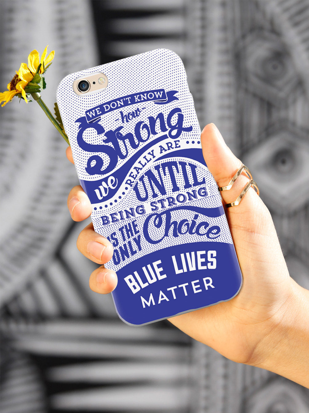 This unique How Strong - Blue Lives Matter - White case was creatively designed and printed with a high-quality finish in-house using UV Printing process, where the ink is cured by UV rays to produce sharp and vivid images with a high degree of color accuracy.
