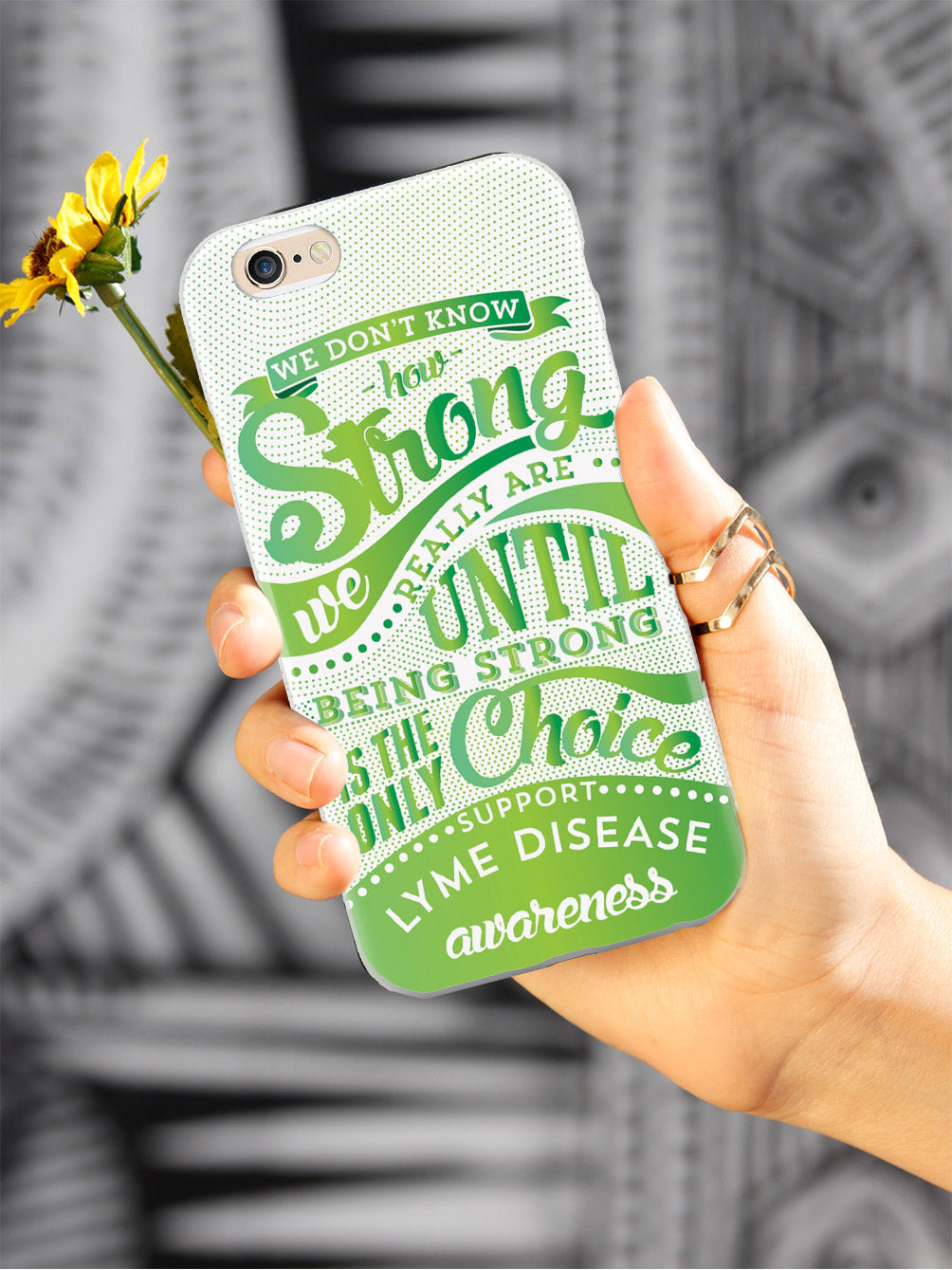 This unique How Strong - Lyme Disease Awareness case was creatively designed and printed with a high-quality finish in-house using UV Printing process, where the ink is cured by UV rays to produce sharp and vivid images with a high degree of color accuracy.