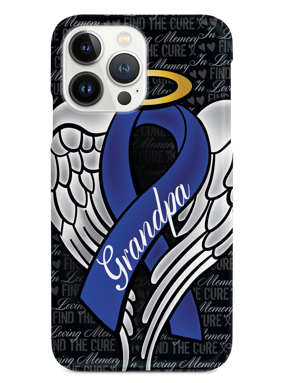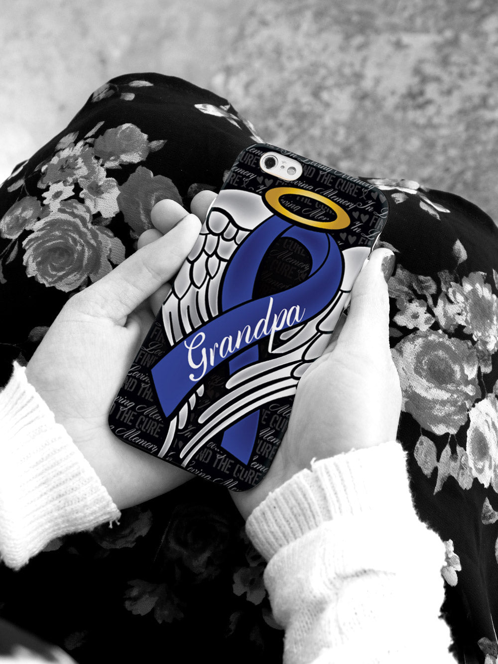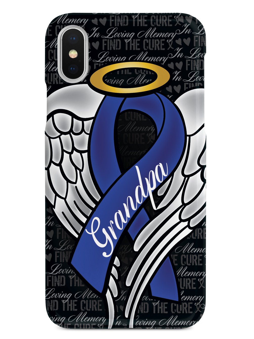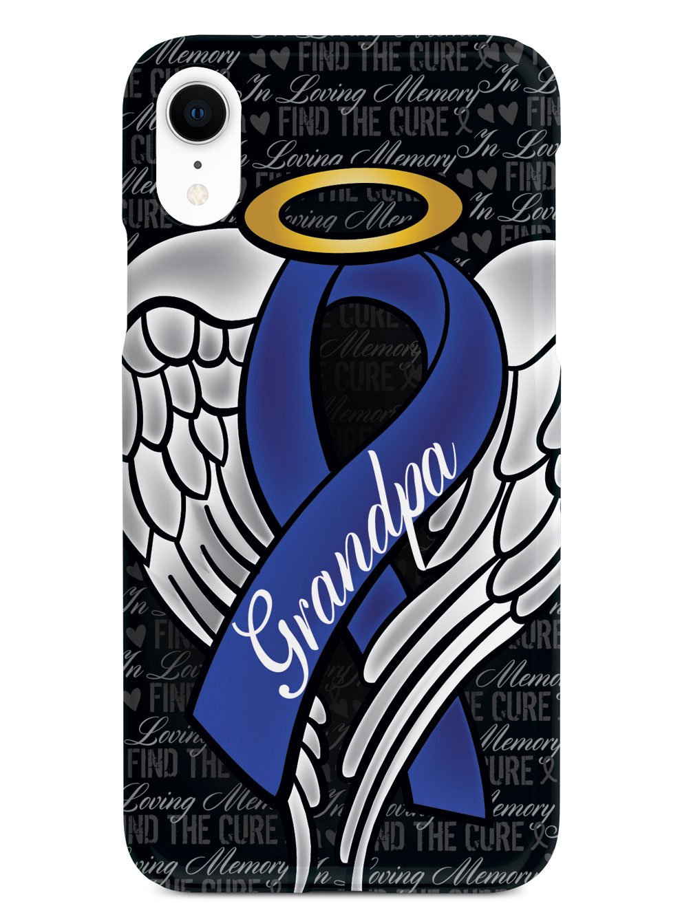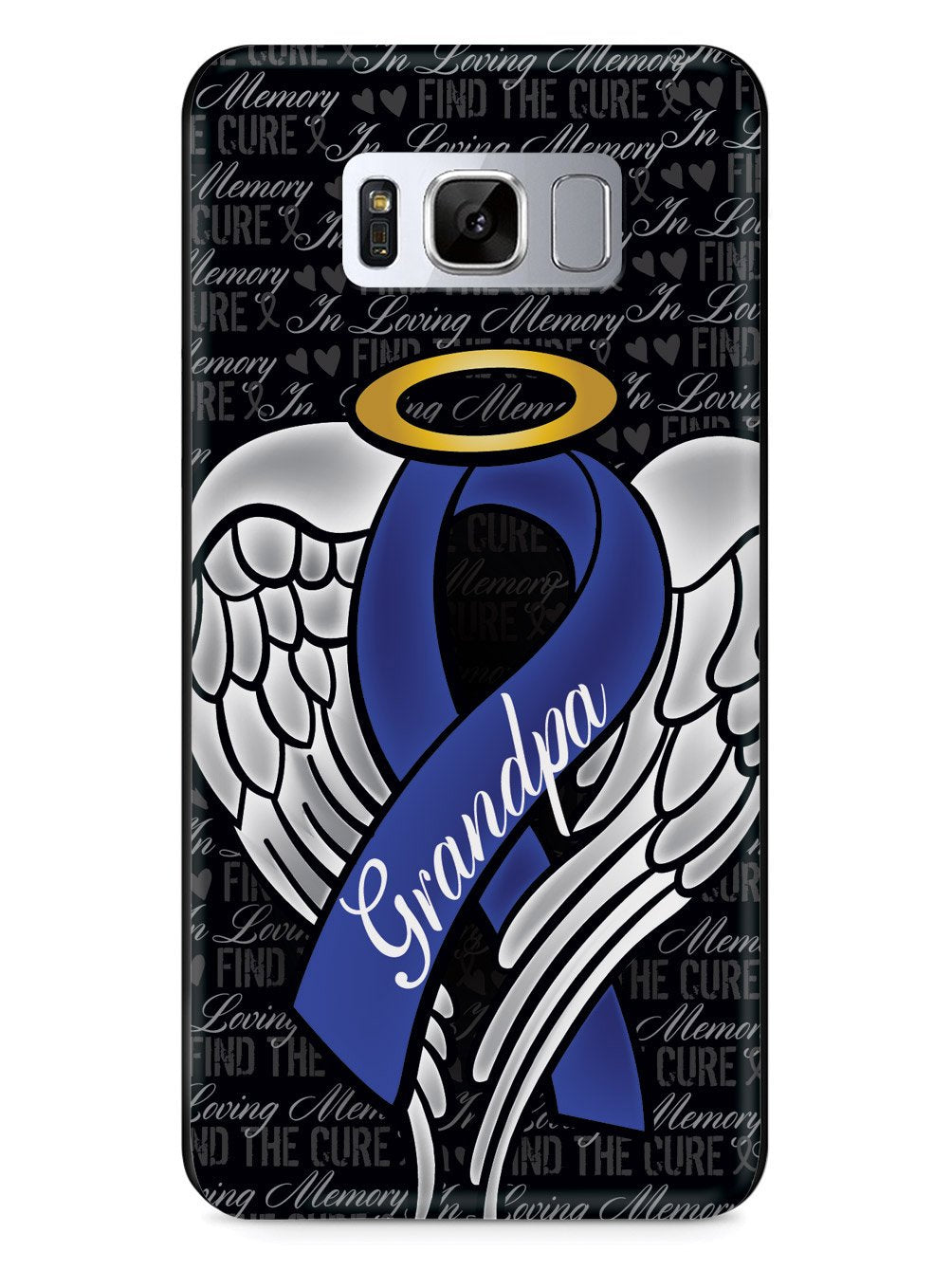 This unique In Loving Memory of My Grandpa - Blue Ribbon case was creatively designed and printed with a high-quality finish in-house using UV Printing process, where the ink is cured by UV rays to produce sharp and vivid images with a high degree of color accuracy.