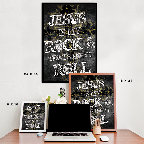 This unique Jesus Is My Rock poster was creatively designed and printed on thick paper with a high-quality finish in-house using UV Printing process, where the ink is cured by UV rays to produce sharp and vivid images with a high degree of color accuracy.