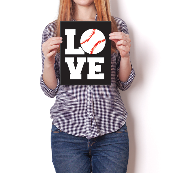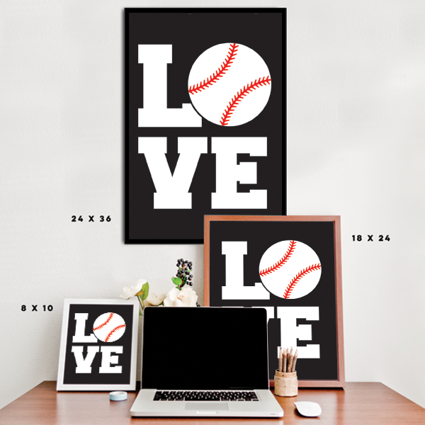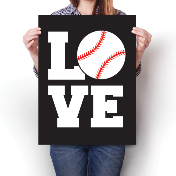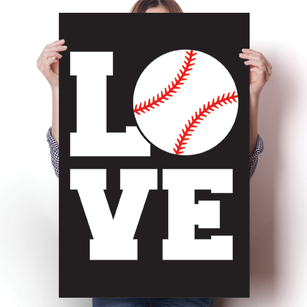 This unique L.O.V.E Baseball poster was creatively designed and printed on thick paper with a high-quality finish in-house using UV Printing process, where the ink is cured by UV rays to produce sharp and vivid images with a high degree of color accuracy.