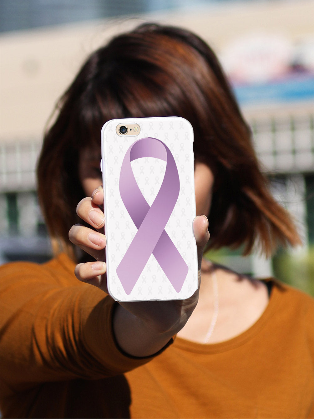 This unique Lavender Awareness Ribbon - White case was creatively designed and printed with a high-quality finish in-house using UV Printing process, where the ink is cured by UV rays to produce sharp and vivid images with a high degree of color accuracy.