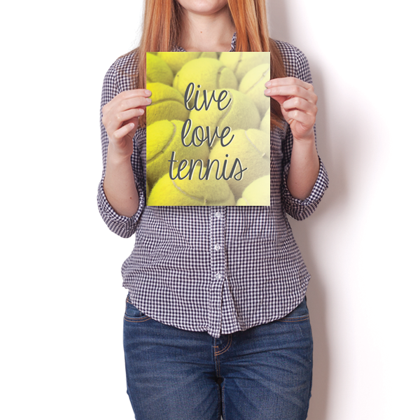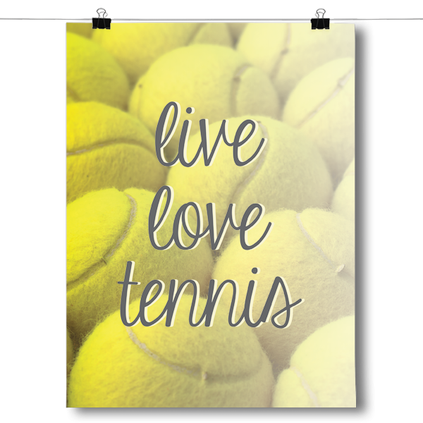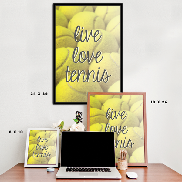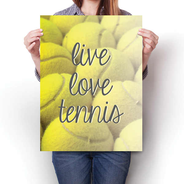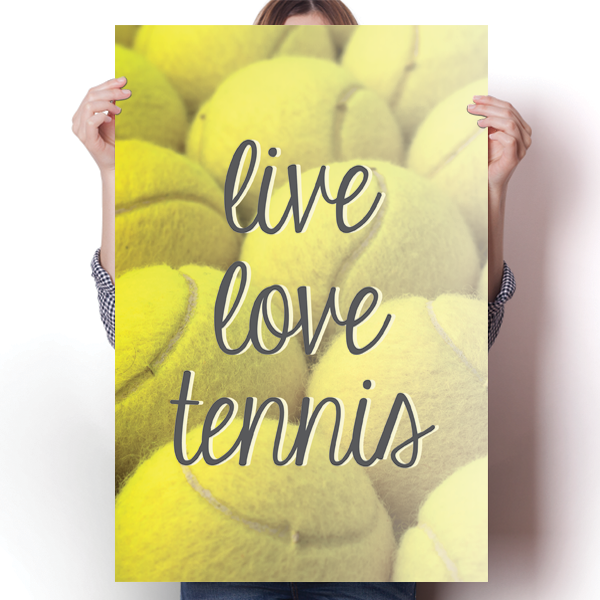 This unique Live Love Tennis poster was creatively designed and printed on thick paper with a high-quality finish in-house using UV Printing process, where the ink is cured by UV rays to produce sharp and vivid images with a high degree of color accuracy.