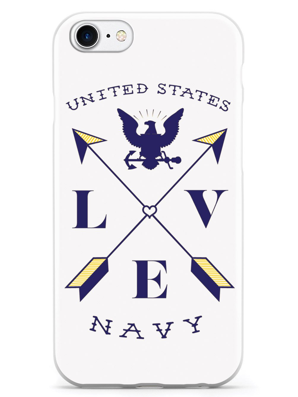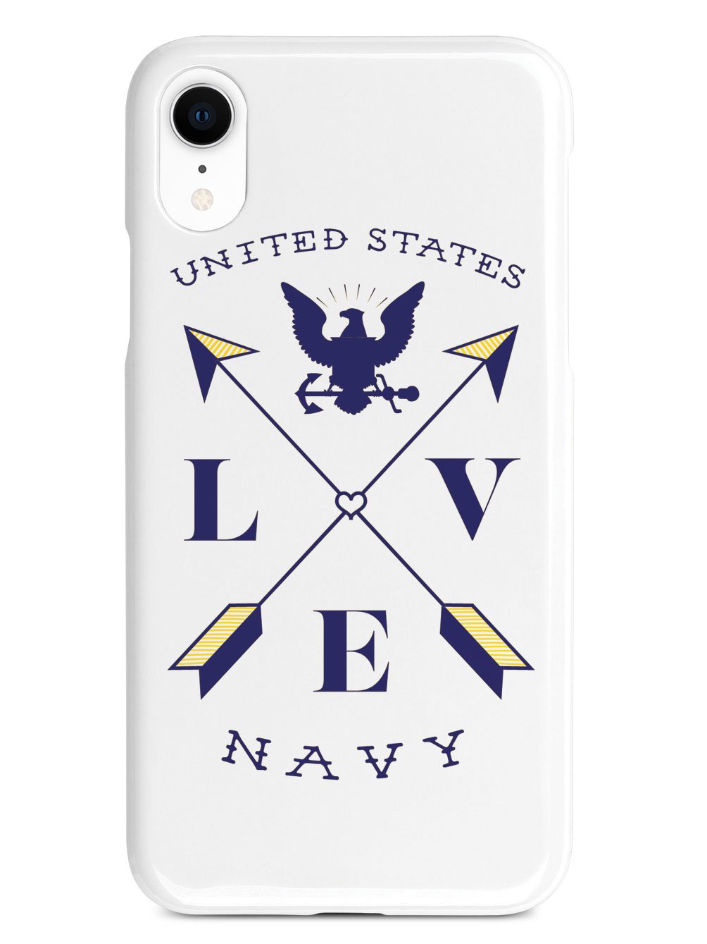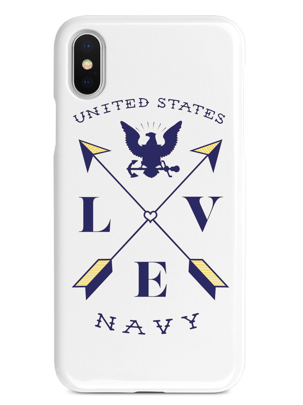 This unique Love Arrow Cross - U.S. Navy case was creatively designed and printed with a high-quality finish in-house using UV Printing process, where the ink is cured by UV rays to produce sharp and vivid images with a high degree of color accuracy.