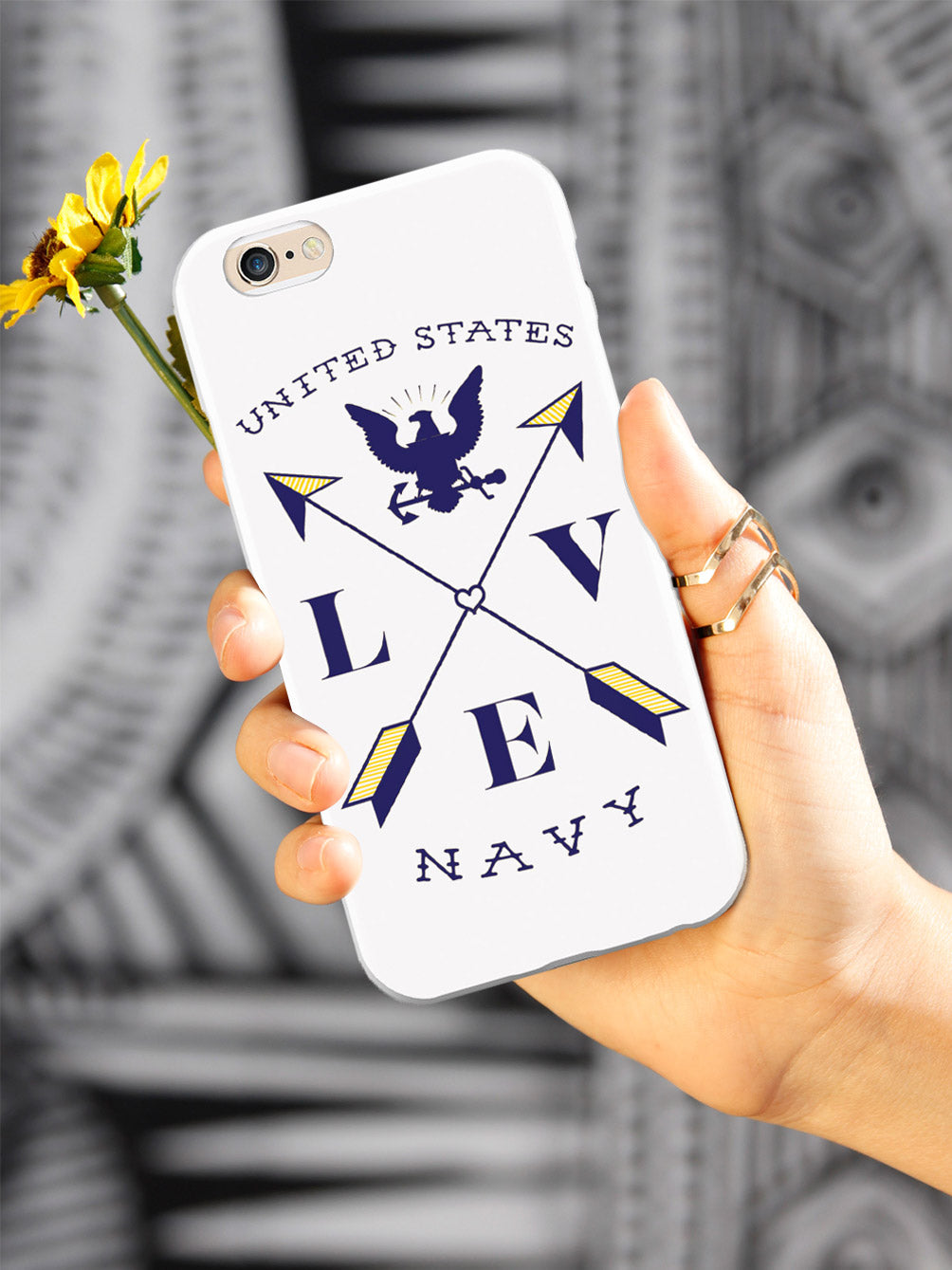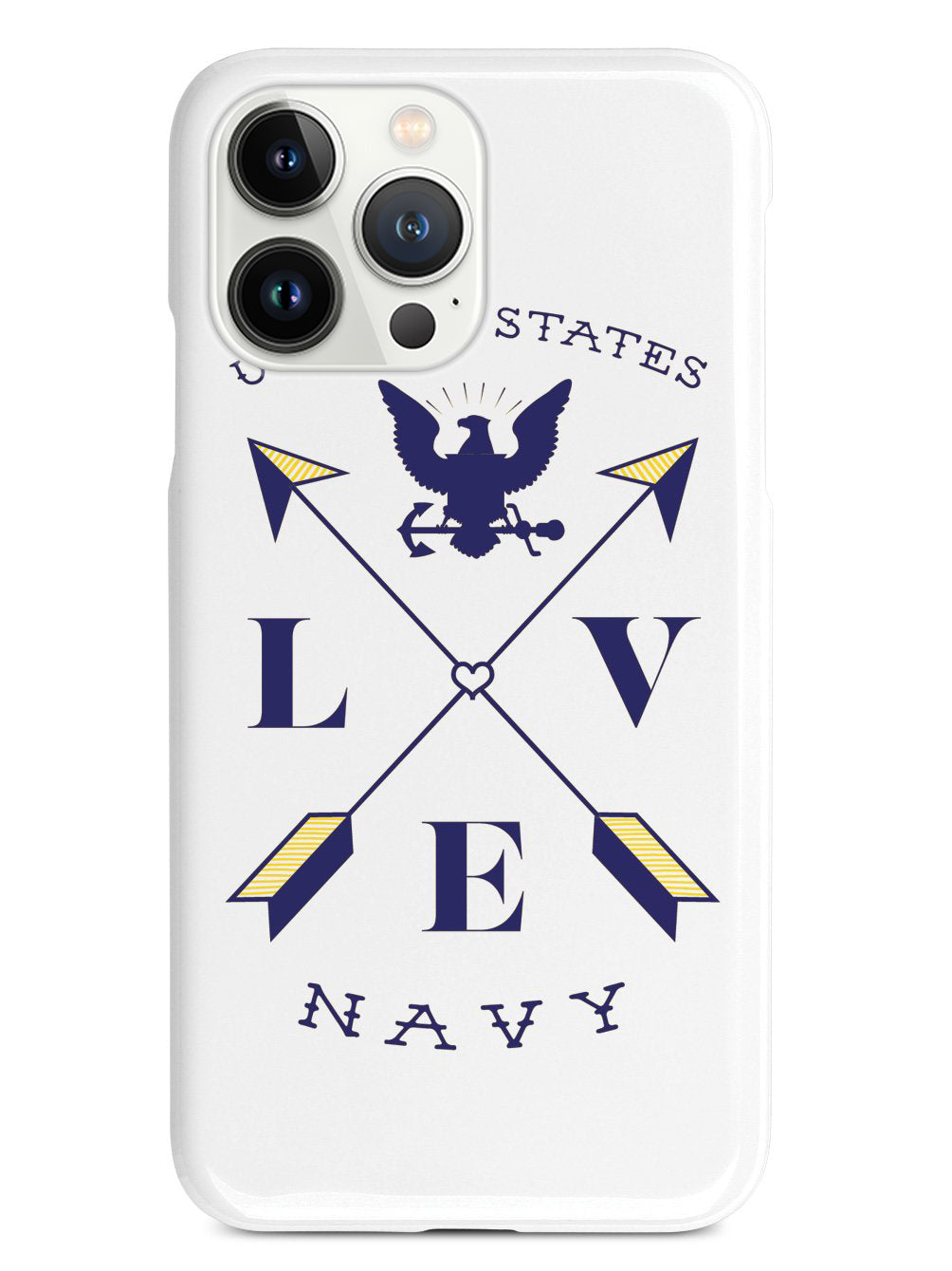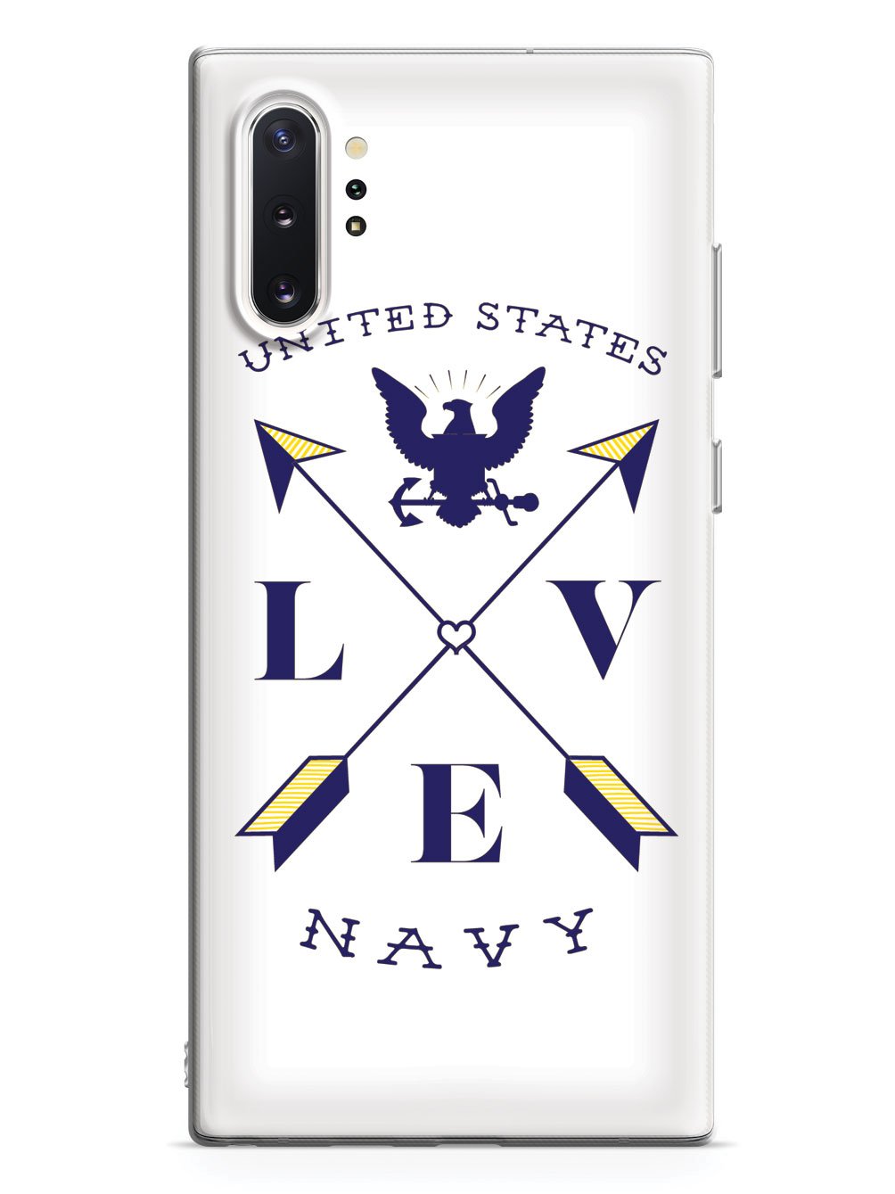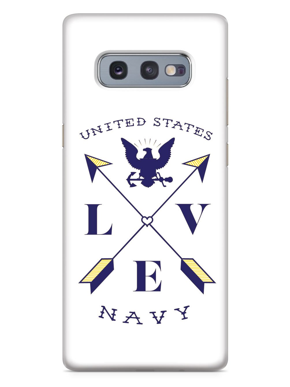 This unique Love Arrow Cross - U.S. Navy case was creatively designed and printed with a high-quality finish in-house using UV Printing process, where the ink is cured by UV rays to produce sharp and vivid images with a high degree of color accuracy.