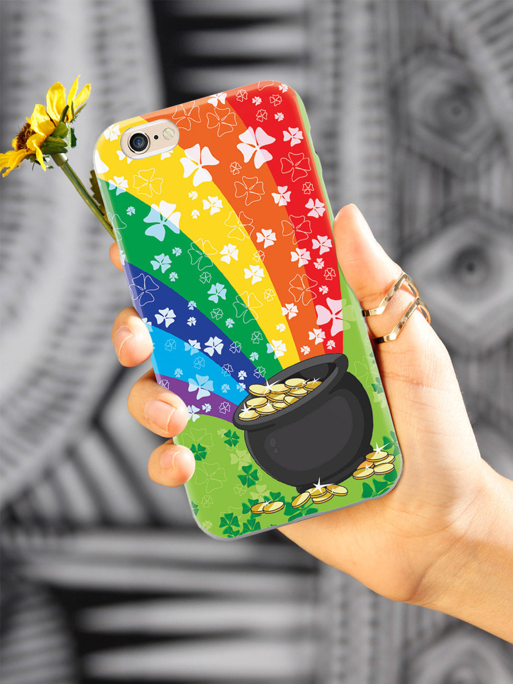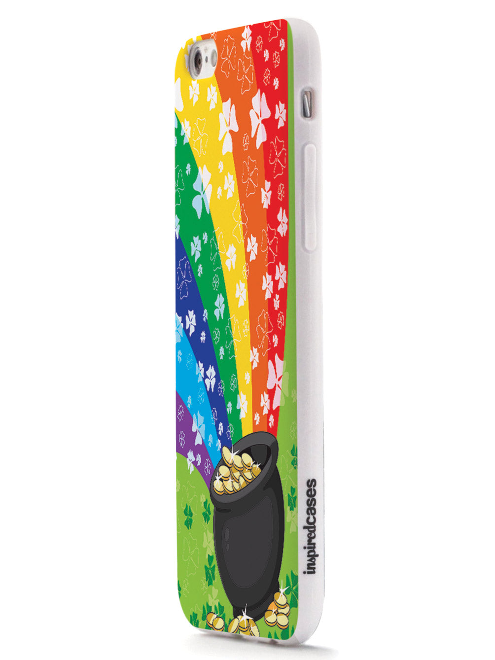 This unique Lucky Rainbow - Pot of Gold - White case was creatively designed and printed with a high-quality finish in-house using UV Printing process, where the ink is cured by UV rays to produce sharp and vivid images with a high degree of color accuracy.
