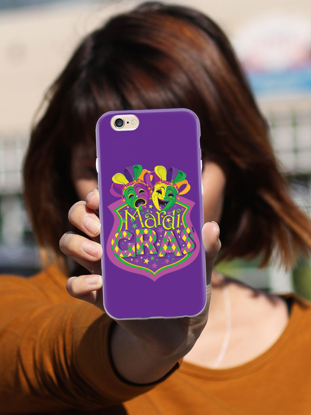 This unique Mardi Gras Masks - White case was creatively designed and printed with a high-quality finish in-house using UV Printing process, where the ink is cured by UV rays to produce sharp and vivid images with a high degree of color accuracy.