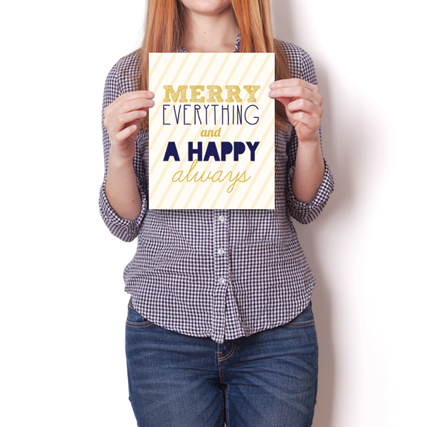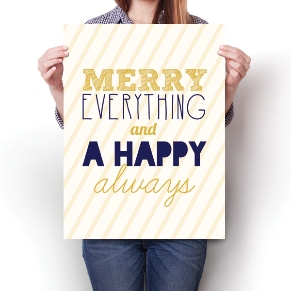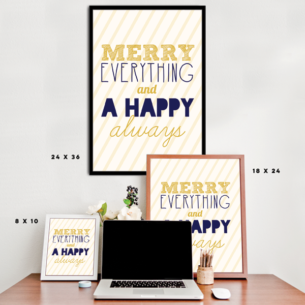 This unique Merry Everything and A Happy Always - Holiday Spirit poster was creatively designed and printed on thick paper with a high-quality finish in-house using UV Printing process, where the ink is cured by UV rays to produce sharp and vivid images with a high degree of color accuracy.
