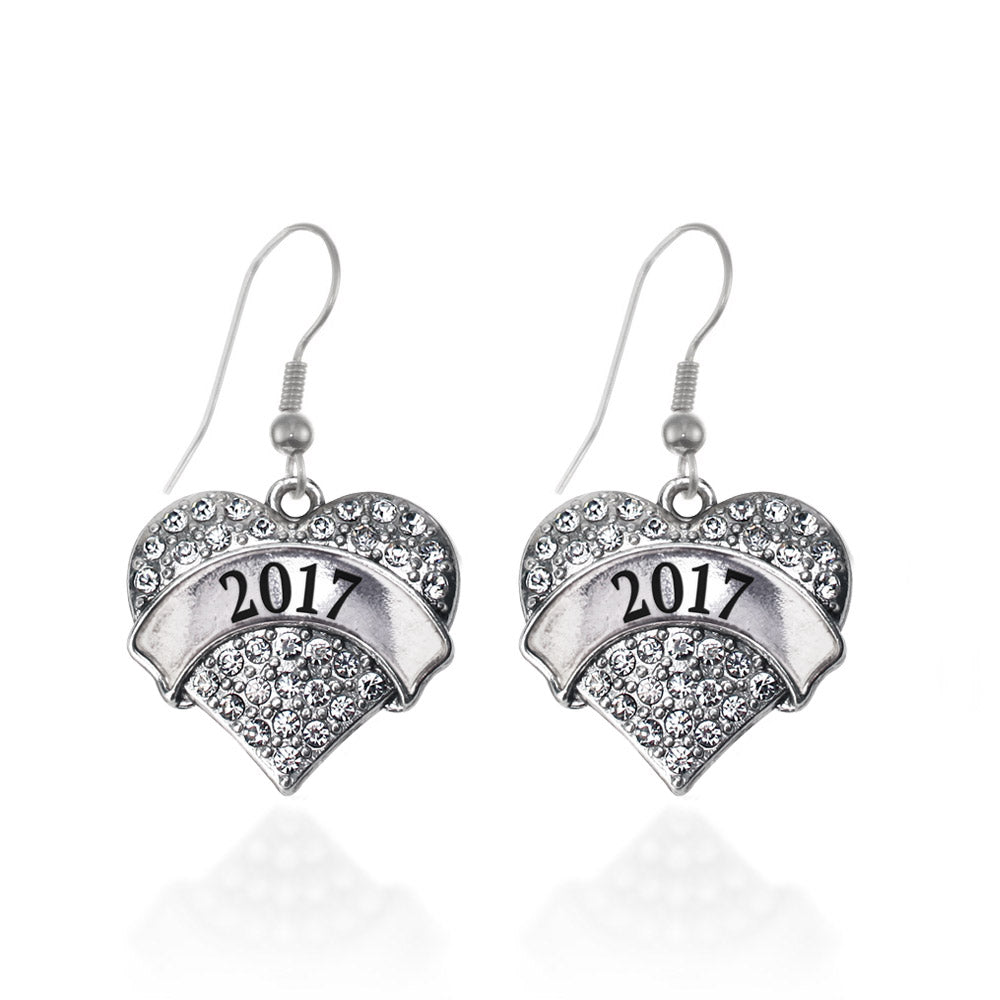 Our sparkling dangle earrings, equipped with a stylish french hook backing and the 2017 pave heart charm, is crafted from white metal with a silver plated finish and accented with cubic zirconia stones.