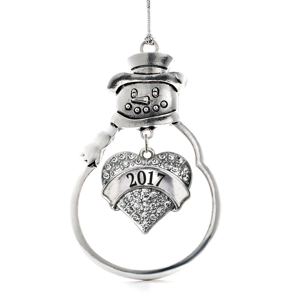 Silver 2017 Pave Heart Charm Snowman Ornament