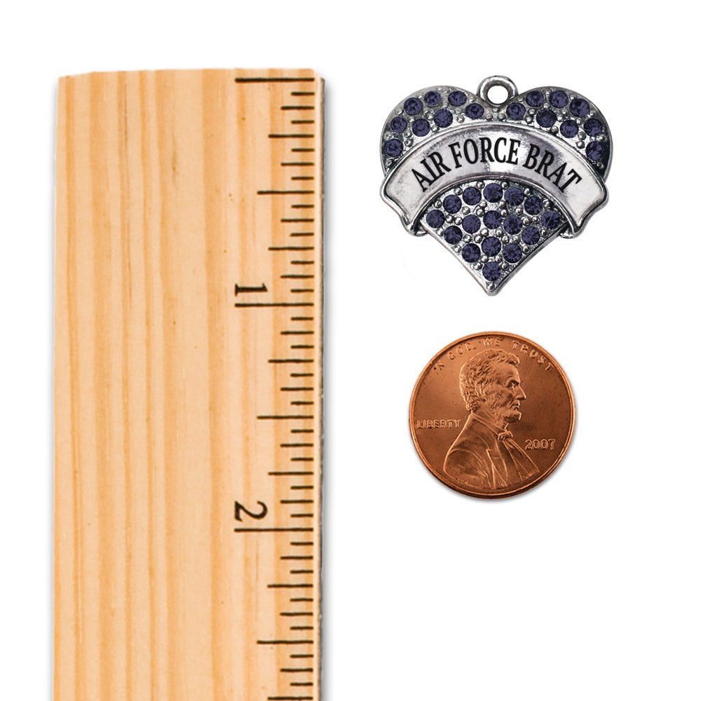 Our sparkling toggle bracelet, equipped with a stylish toggle clasp and the Air Force Brat blue pave heart charm, is crafted from white metal with a silver plated finish and accented with cubic zirconia stones.