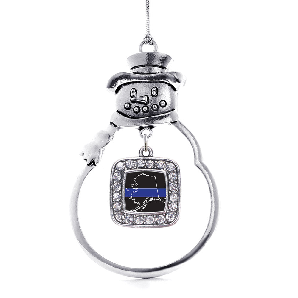 Silver Alaska Thin Blue Line Square Charm Snowman Ornament