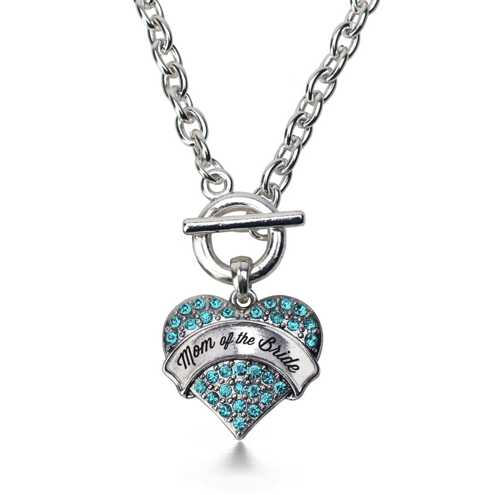 Silver Aqua Mom of the Bride Aqua Pave Heart Charm Toggle Necklace