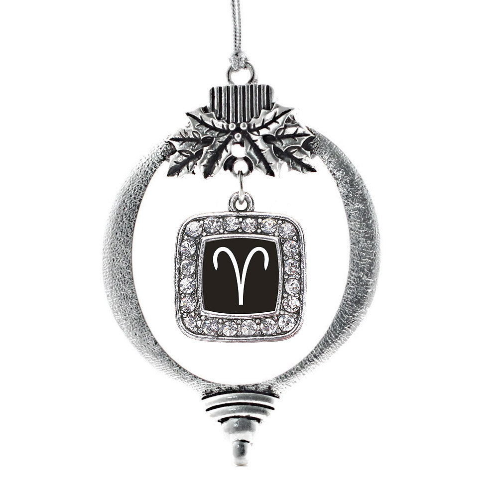 Our sparkling holiday ornament, equipped with a stylish silver rope and the Aries Zodiac square charm, is crafted from white metal with a silver plated finish and accented with cubic zirconia stones.