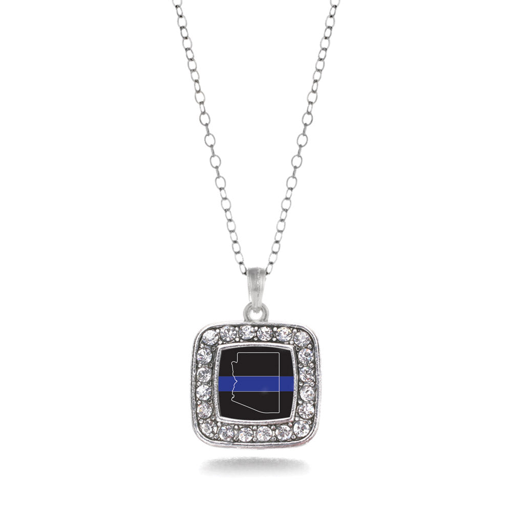 Silver Arizona Thin Blue Line Square Charm Classic Necklace