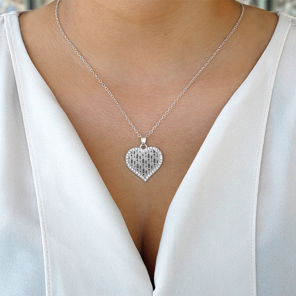Silver Arrow Pattern Open Heart Charm Classic Necklace